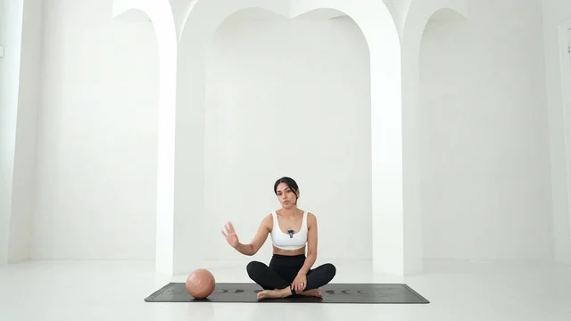 Softness and strength meet in this beginner-friendly ball flow, where the body is guided into length, control, and quiet activation. The ball offers just enough support to help the core switch on gently, while the hips, waist, and side body open with ease and fluidity. There’s a playful lightness in the work that encourages balance and coordination, with small stability challenges awakening deep core muscles that rarely activate in everyday positions. These subtle shifts bring calm strength to the postural system and soothing openness through the sides of the body, making the flow feel supportive across the cycle and steady through the early stages of pregnancy.